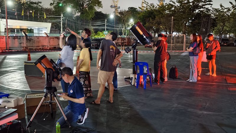 วัตถุเป้าหมายของการดูดาวคือดาวพฤหัสบดี เริ่มหัวค่ำมีดาวเสาร์ขึ้นก่อน กล้องทุกตัวจึงหันลำกล้องไปส่องที่ดาวเสาร์ก่อนเมื่อฟ้ามืดประมาณเวลา 19.00 น. ไปจนถึง 20.00 โดยประมาณแล้วจึงหันกล้องไปหาดาวพฤหัสบดีตั้งแต่ 20.00 น. ขึ้นไปจนเที่ยงคืน ผู้ที่มาชมดาวคืนนี้ทุกคนชื่นชอบมากได้หมุนเวียนดูกล้องทั้งขนาดเล็กไปหาขนาดใหญ่ เด็กเล็กจะตื่นเต้นดีใจ พอเวลาประมาณ 21.00 น. ผู้ที่เข้ามาดูดาวทยอยกลับคนน้อยลงเหลือแต่วัยรุ่นที่อยากถ่ายรูปดาวผ่านมือถือหลายคนสามารถถ่ายดาวด้วยมือผ่านกล้องดูดาวด้วยมือถือของตนเองได้ หลายคนชอบที่ถ่ายดาวพฤหัสบดีที่มีดาวบริวารได้ชัด 4 ดวง