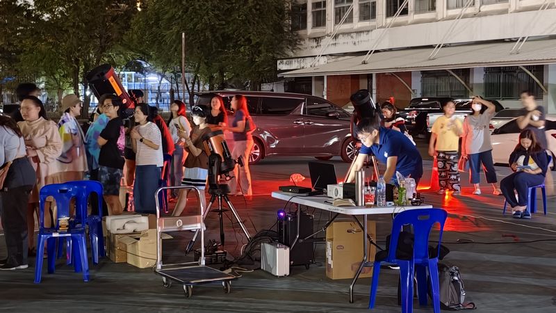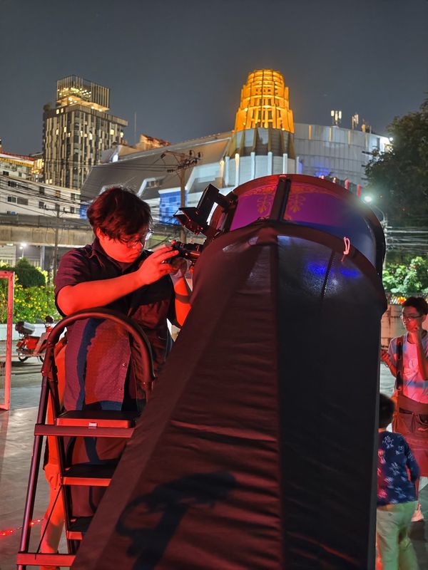 กล้องตัวที่ 5 ผู้ตั้งกล้องและให้บริการคือนายสุภาภัทร อุดมรัตน์นุภาพ คุมกล้องสะท้องแสง Dobsonian 8 นิ้ว ส่องดูดาวเสาร์และดาวพฤหัสสบดี