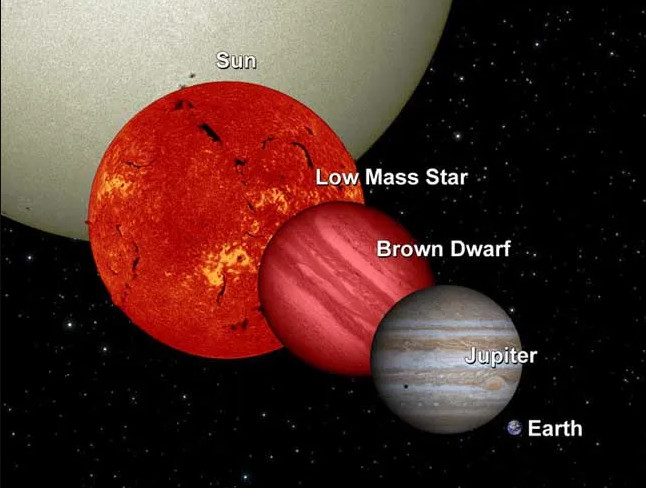 ดาวแคระน้ำตาล เป็นวัตถุคล้ายดาวฤกษ์ แต่มีมวลไม่มากพอที่จะเป็นดาวฤกษ์ ส่องสว่างด้วยกระบวนการหลอมดิวทีเรียม ซึ่งให้ความร้อนน้อยกว่าดาวฤกษ์ ดาวแคระน้ำตาลมีมวลได้ไม่เกิน 90 เท่าของดาวพฤหัสบดี