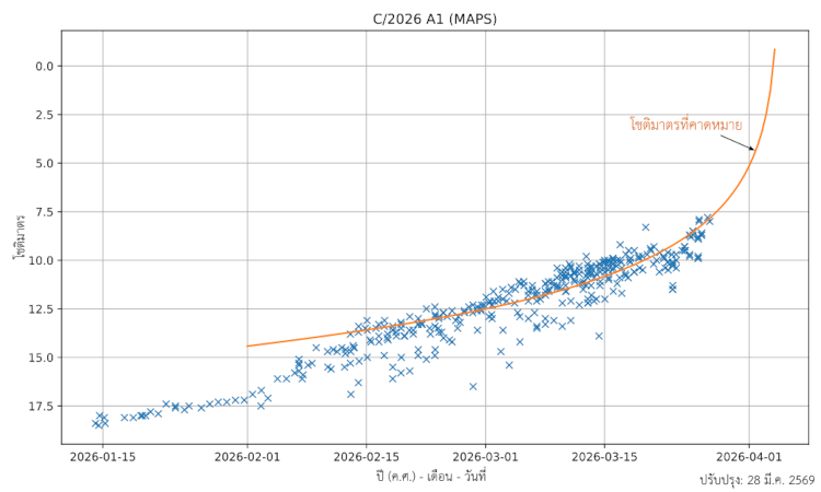 (4 เมษายน 2569) จากภาพถ่ายล่าสุดของดาวหางแม็ปส์เมื่อเช้ามืดของวันนี้ตามเวลาประเทศไทย แสดงว่าดาวหางยังคงดูดีและสว่างขึ้นเรื่อย ๆ น่าจะสว่างกว่าโชติมาตร 1 (อาจใกล้ 0)