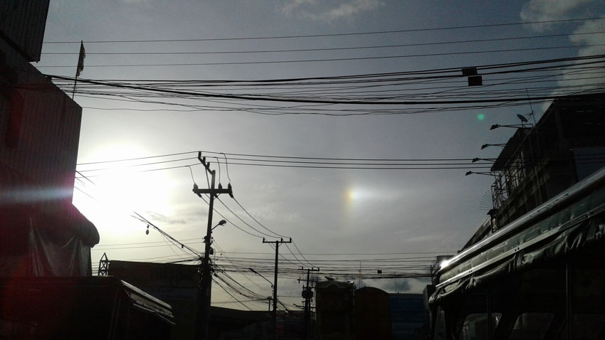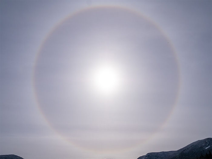 หากอาทิตย์ทรงกลดเกิดขึ้นขณะดวงอาทิตย์อยู่ไม่สูงจากขอบฟ้ามากนัก