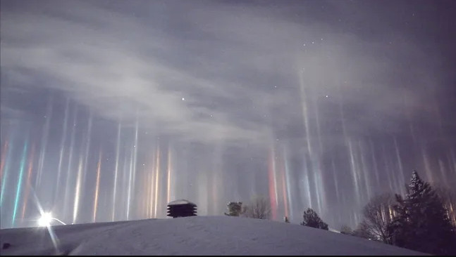 เมื่อมีแหล่งกำเนิดแสงเป็นจุดอยู่ห่างไกลออกไปและมีเมฆอยู่บนท้องฟ้าในระดับที่เหมาะสม