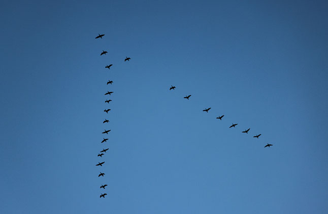 ภาพถ่ายท้องฟ้าตอนกลางคืนที่เปิดหน้ากล้องเป็นเวลานาน เมื่อเครื่องบินบินผ่านหน้ากล้อง จะปรากฏเส้นแสงที่เกิดจากดวงไฟที่ติดบนเครื่องบิน สังเกตว่ามีมากกว่าหนึ่งดวง บางดวงสว่างนิ่ง ปรากฏเป็นเส้นต่อเนื่อง บางดวงกะพริบ ปรากฏเป็นเส้นประ