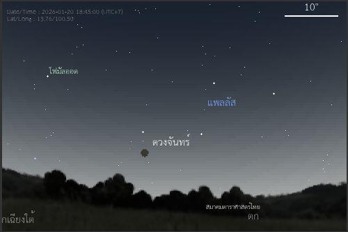 ความสูงของดวงจันทร์ตลอดวันที่ 20 มกราคม 2569